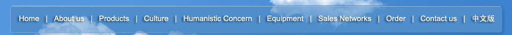 Home | About us | Products | Culture | Humanistic Concern | Equipment | Sales Networks | Order | Contact us | Chinese